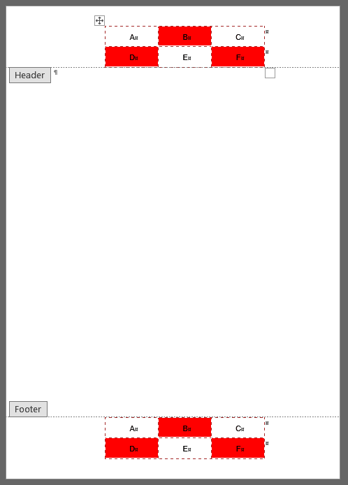 /// How to add a table in header or footer into a document.