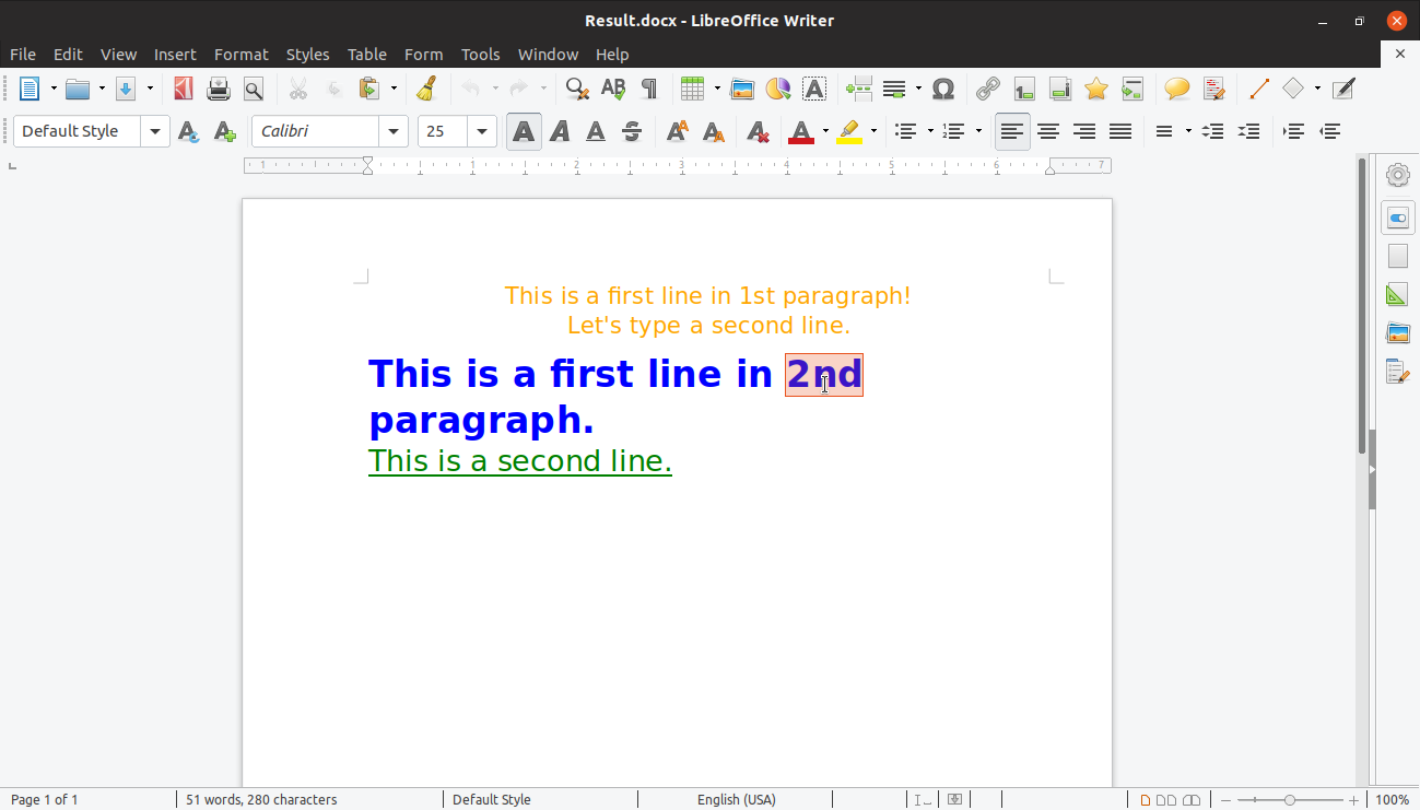 If you don't see any exceptions, the produced DOCX file will be opened automatically in the default DOCX viewer (in our case it’s LibreOffice):