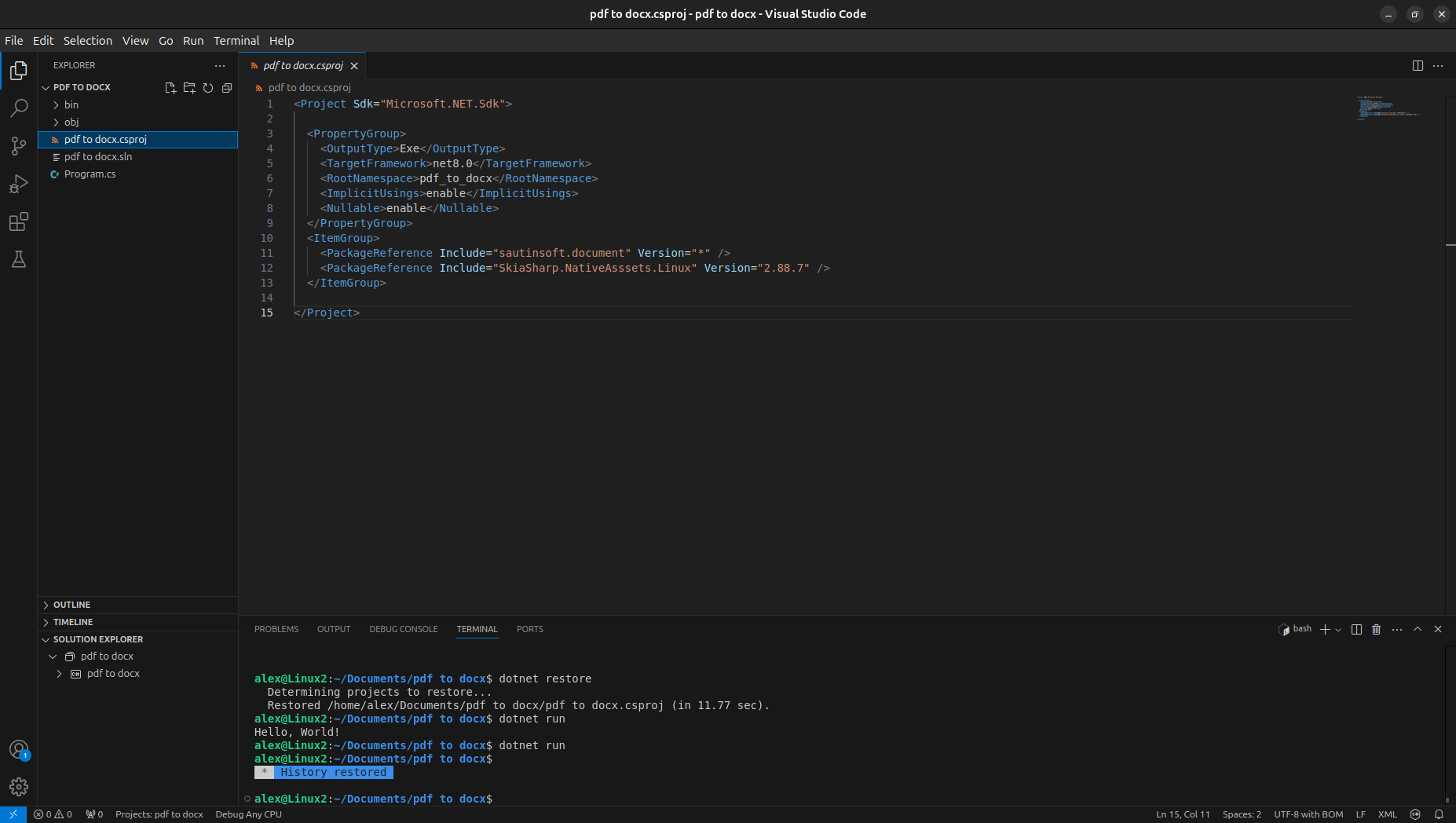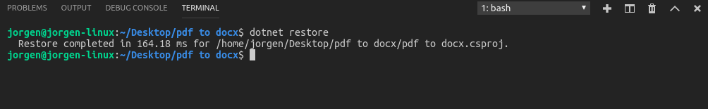 At once as we’ve added the package reference, we have to save the “pdf to docx.csproj” and restore the added package.