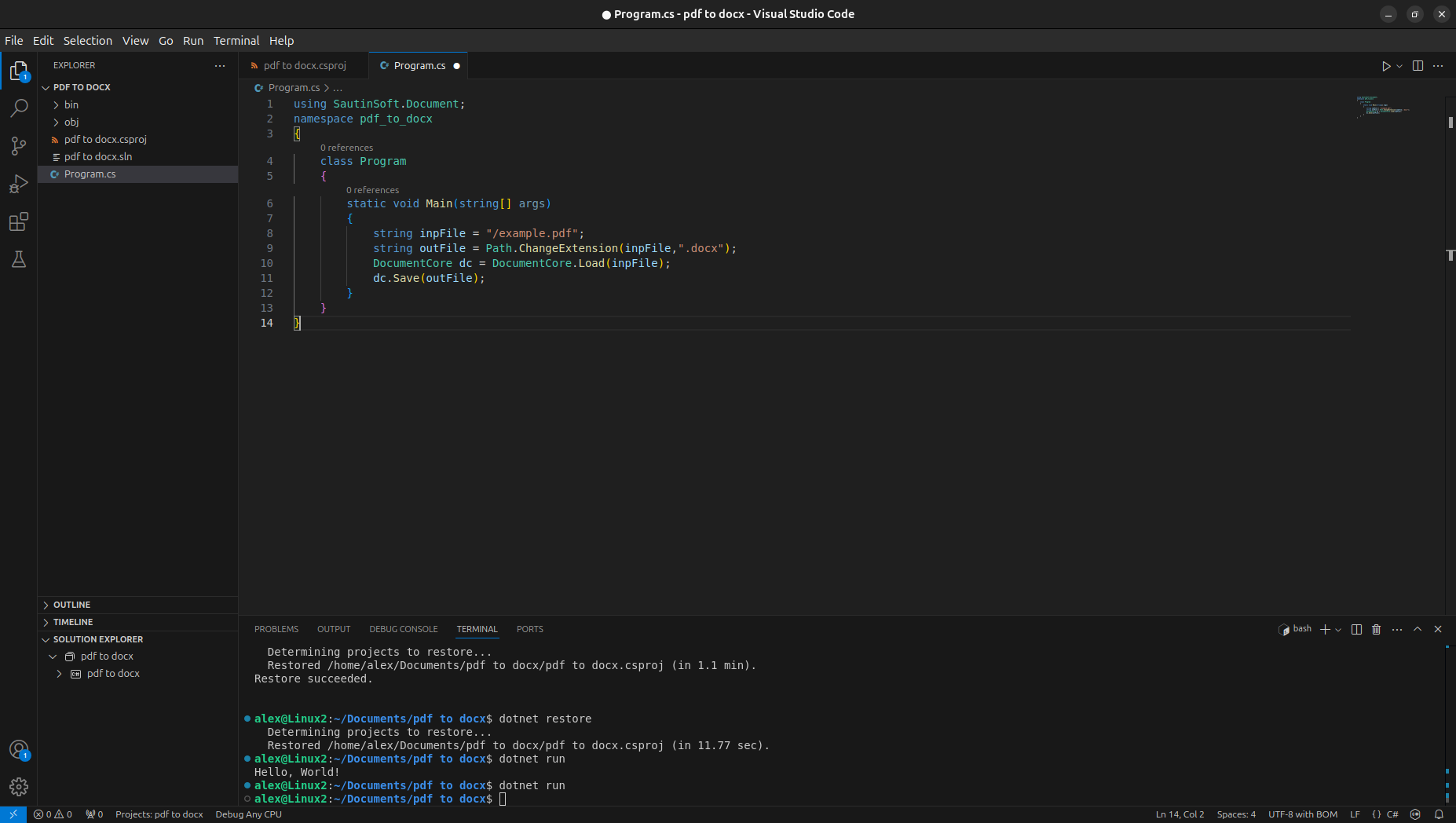 Well done! You have created the “PDF to DOCX” application under Linux!