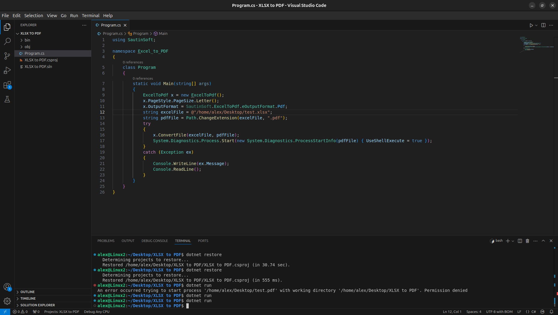 Watching this video can help you to create a simple Console app to convert Excel to PDF under Linux (Ubuntu):