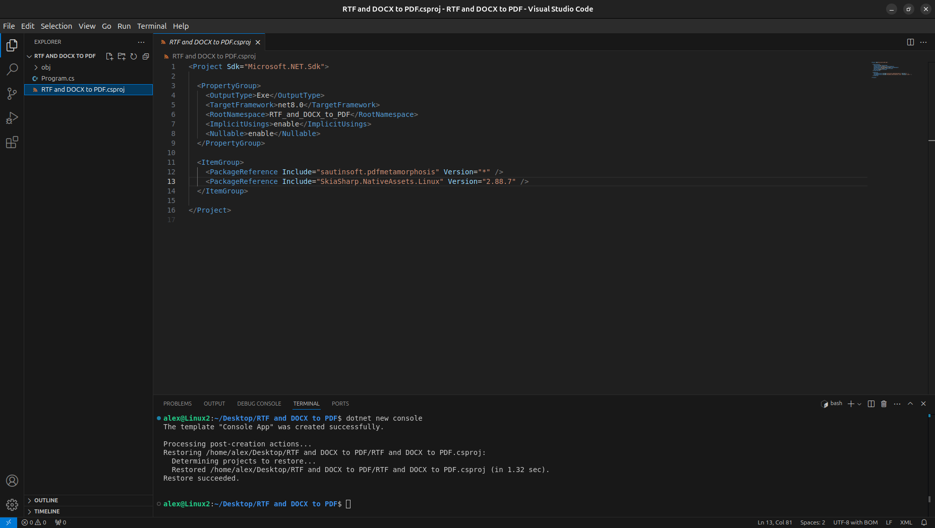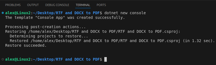 Well done! You have created the “RTF/DOCX to PDF” application under Linux!