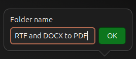For example, let’s create the folder “RTF and DOCX to PDF” on Desktop ( Right click-> New Folder):