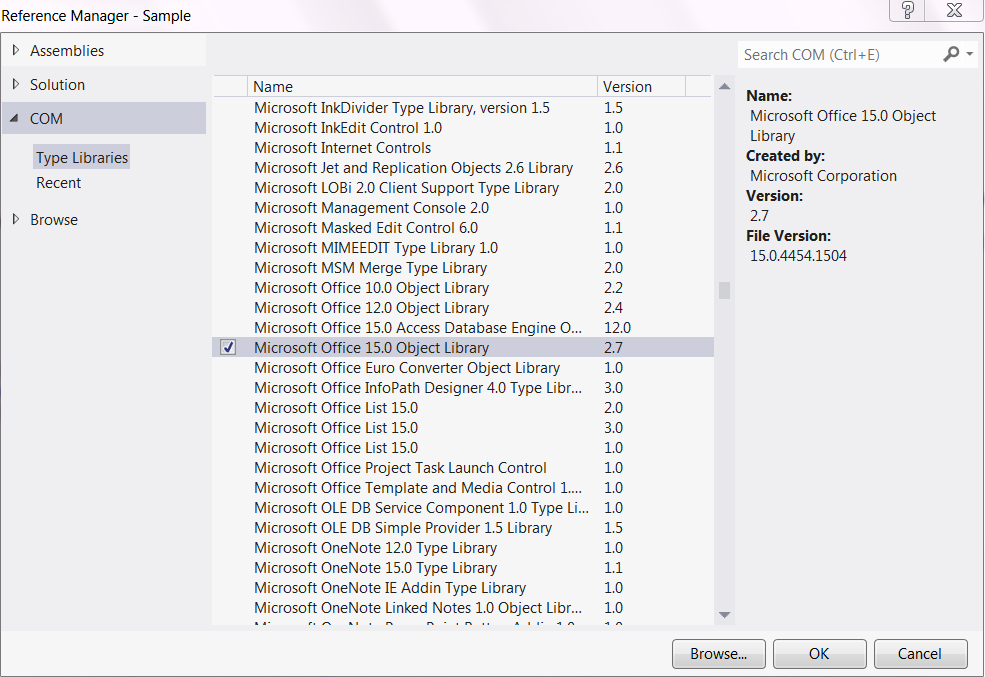Reference to Microsoft.Outlook library